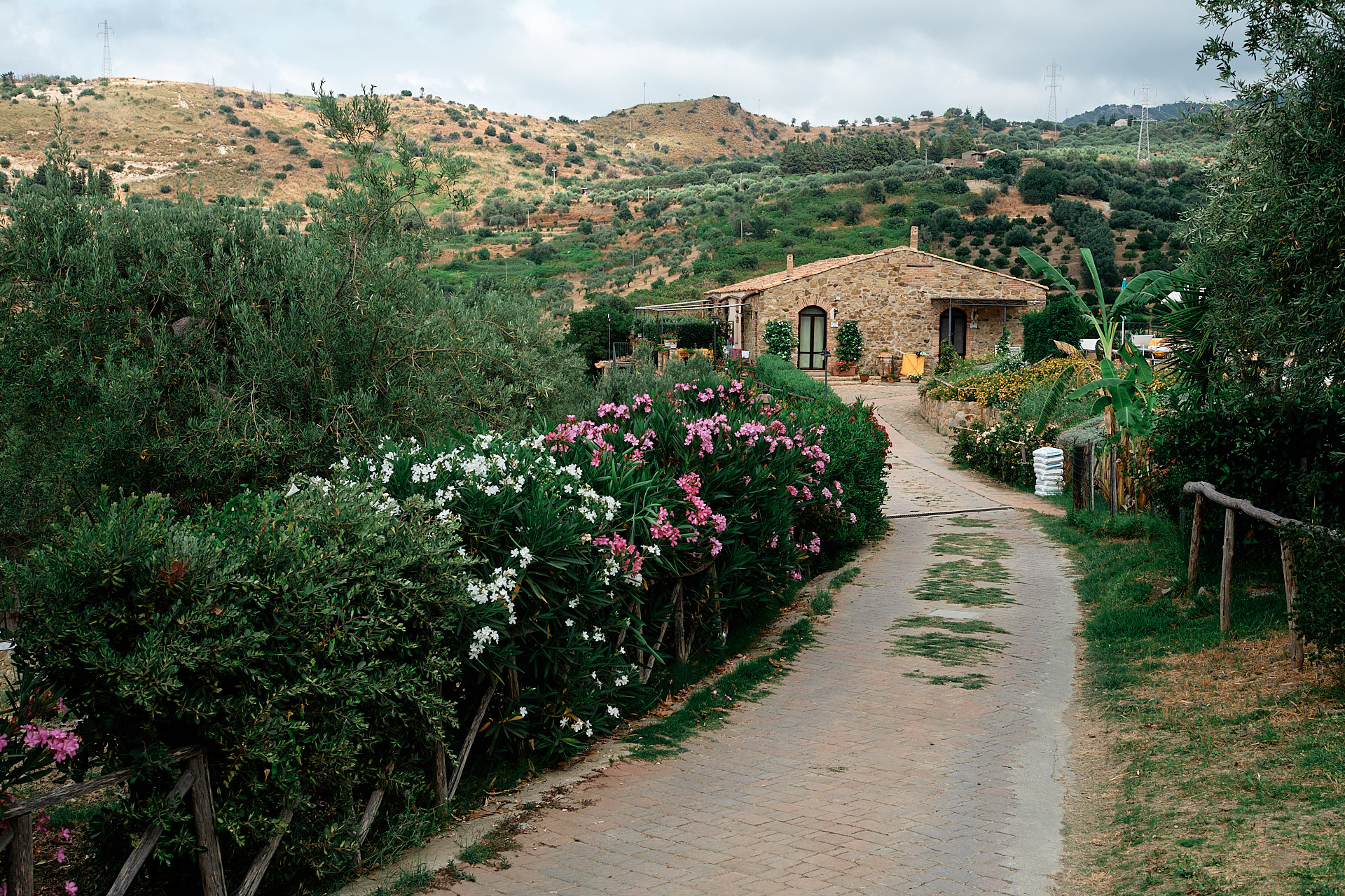 Et là pour la pampa c’est la pampa. Faut dire qu’après le “Country Village” et la maison particulière, on enchaîne avec ce qui se fait très traditionnellement en Italie, l’Agriturismo. On dirait un gite en France, mais c’est encore plus établi en Italie : les corps de ferme sont souvent bien séparés en appartement indépendants, tu as le confort sans devoir forcément te taper la discute avec Hector le fils du proprio qu’aime Frida et qu’à jamais tué de chats, ou alors y’a longtemps, ou bien il a oublié, ou ils sentaient pas bon. Bref, ici à part Giuseppe qui se fait engueuler par la Madre version poisson pourri, c’est plutôt le calme de la campagne italienne en mode film des années 80 : les oliviers, les balcons fleuris, la petite table en métal toute mignonne que tu sens bien qu’elle va accueillir Prosciutto, Salame, Pecorino e Nero d’Avola … La terrasse d’herbe verte donne sur la vallée, des percées dans les haies séparant les logements laissent passer les chiens de montagne quand ils ne sont pas de corvée de mouton. La classe à la Sicilienne quoi, version campagne chic.