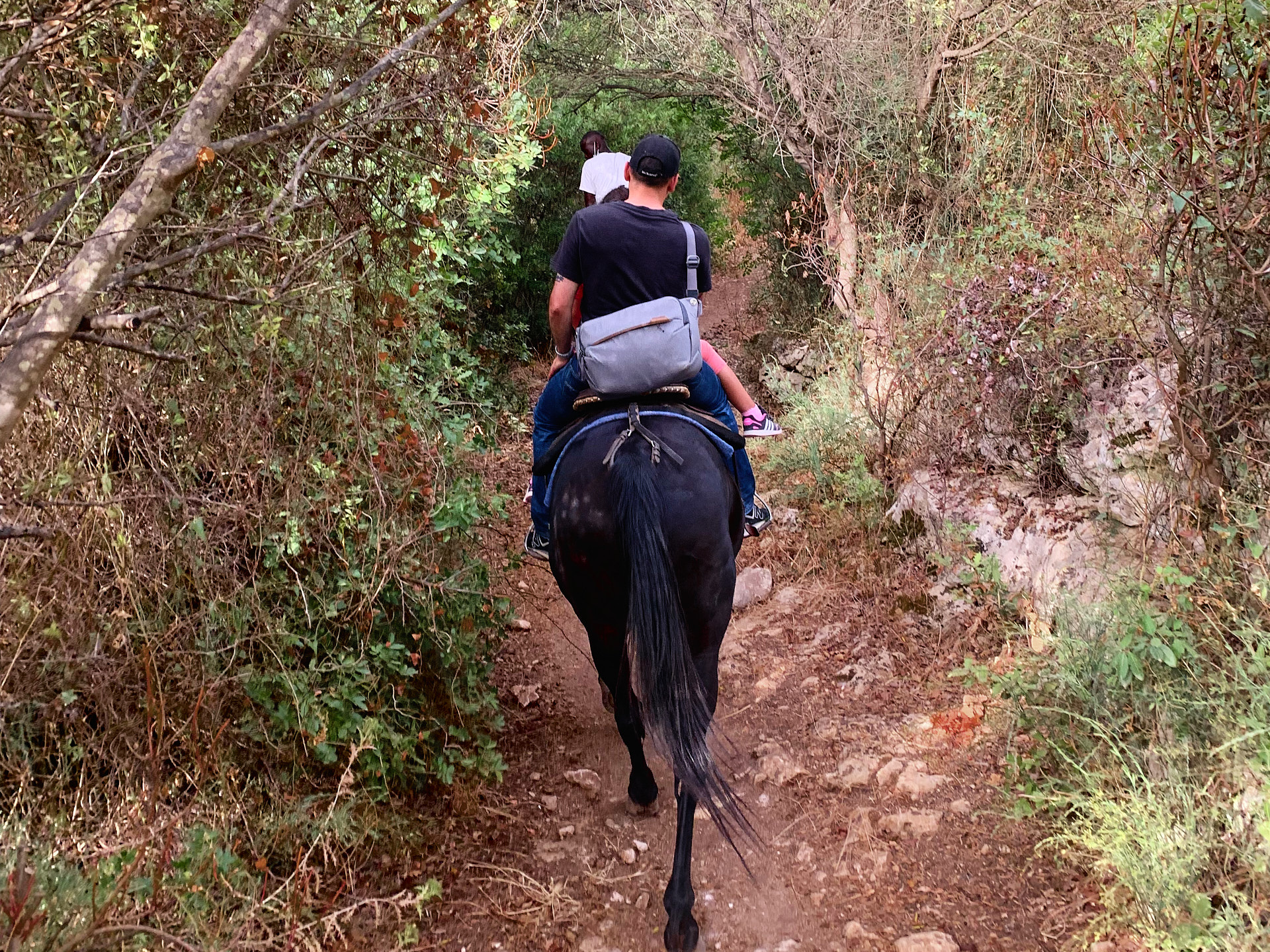 Bien heureux l’ange qui se laisse conduire par la Gerbille dans les méandres des routes provinciales de Sicile pour arriver par 39 degrés bien tapés dans un ranch. Ewé, si on aime finir sur une note joviale nos voyages (qu’on dit que c’est pour la mininou mais qu’on en profite aussi bien quand même), Covid oblige et situation générale de la qualité de la maintenance des éléments de traction métalliques en Italie, on troquera le parc d’attraction par quelques jours à dos de canasson.