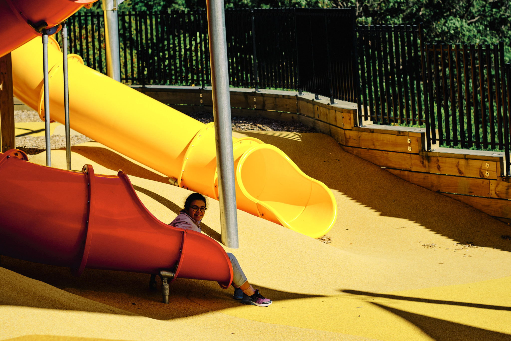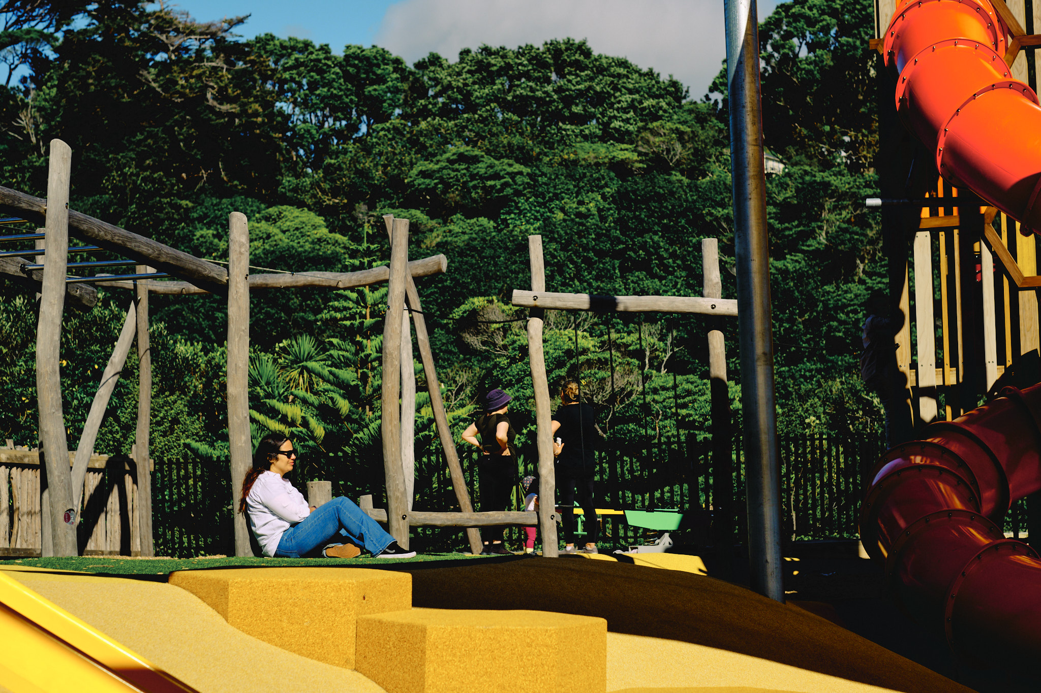 Etrangement, dans tout ce parcours, j’ai particulièrement apprécié la zone de jeux pour enfants, avec tyrolienne et balançoires et pour à peine une poignée d’enfants et parents présents. Clairement nous sommes loin de l’heure de pointe de notre bon vieux square Trousseau, Paris XII, le dimanche après-midi. Nous avons tous bien profité d’une pause fort salutaire.
