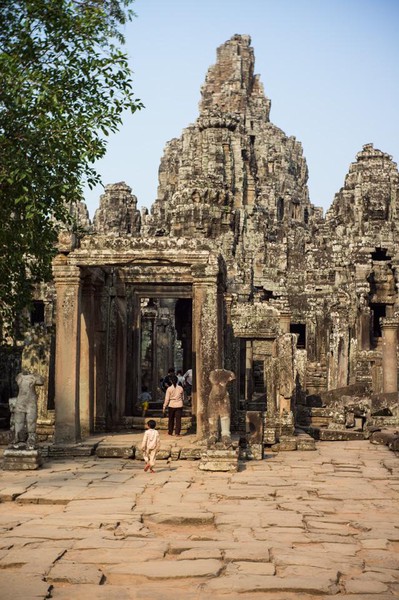 Pour bien commencer la journée, visite du temple Bayon… A l’arrivée tout se passe merveilleusement bien, le temple est tout simplement magnifique. Dès l’entrée, on ressent la spiritualité et la beauté de l’endroit, liées entre autres, à la présence de ces centaines de visages sculptés portant le fameux sourire énigmatique représentant Angkor dans notre imaginaire collectif. Nous rôdons plusieurs dizaines de minutes en nous laissant porter par l’endroit, peut-être un peu trop longtemps d’ailleurs, avant de gravir les marches (très raides) menant au sanctuaire. Nous sommes alors attaqués de toutes parts par des groupes de touristes principalement asiatiques s’interpellant bruyamment dans toutes sortes de langues, prenant des dizaines de fois les mêmes photos des mêmes lieux. - NDA: j’en ai même vu ne filmer que les dos des touristes de son groupe! -