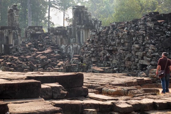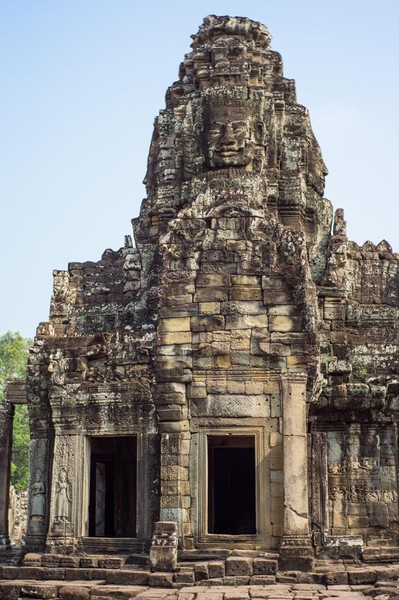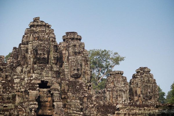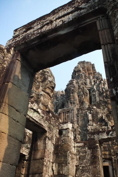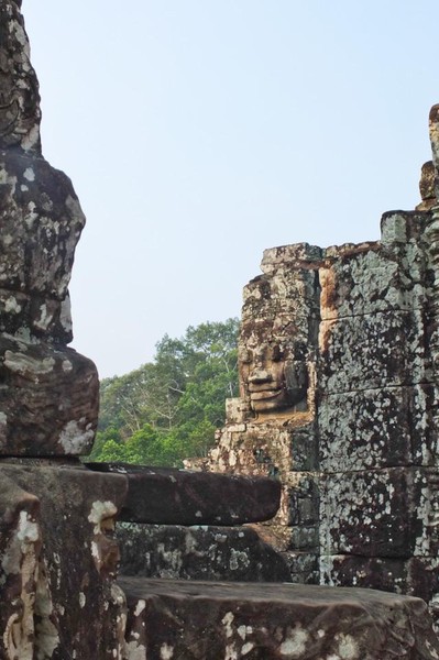 Pour bien commencer la journée, visite du temple Bayon… A l’arrivée tout se passe merveilleusement bien, le temple est tout simplement magnifique. Dès l’entrée, on ressent la spiritualité et la beauté de l’endroit, liées entre autres, à la présence de ces centaines de visages sculptés portant le fameux sourire énigmatique représentant Angkor dans notre imaginaire collectif. Nous rôdons plusieurs dizaines de minutes en nous laissant porter par l’endroit, peut-être un peu trop longtemps d’ailleurs, avant de gravir les marches (très raides) menant au sanctuaire. Nous sommes alors attaqués de toutes parts par des groupes de touristes principalement asiatiques s’interpellant bruyamment dans toutes sortes de langues, prenant des dizaines de fois les mêmes photos des mêmes lieux. - NDA: j’en ai même vu ne filmer que les dos des touristes de son groupe! -