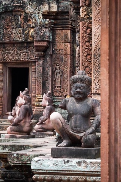 Les trois autres temples, le Baphuon, le Banteay Srei et le Banteay Samre ne sont pas sur les circuits journaliers de nos groupes de touristes. Ils sont également moins bien conservés ou moins impressionnants que Angkor Wat ou le Bayon mais devaient l’être bien plus il y a plusieurs centaines d’années, le premier pour son Bouddha couché de plusieurs centaines de mètres - NDA: Et non boulet de touriste (français), ce n’est pas une illusion d’optique ! -, le second pour la finesse de sa décoration et le troisième comme inspiration du fameux et très célèbre Angkor Wat. Pour nous ils ont été l’occasion de sortir un peu des sentiers battus, grâce à Mara, notre fabuleux Tuk-Tuk magicien (qui a toujours réussi à nous retrouver dans la foule des touristes) et de s’inspirer d’endroits plus reculés que Siem Reap et l’enceinte d’Angkor Thom.