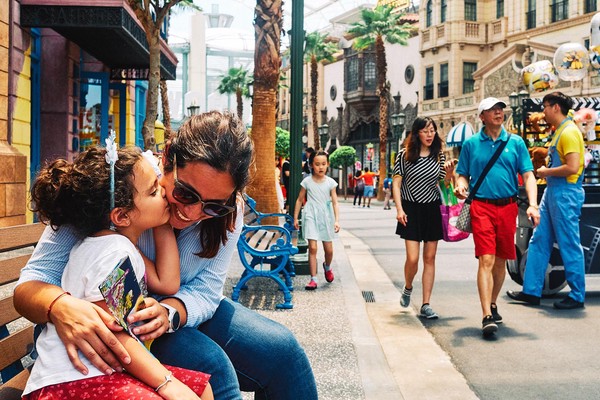 Ok y’a pas Mickey, mais s’il avait fait un parc d’attraction à Singapour c’est probablement à ça qu’il aurait ressemblé… le parc, pas mickey … parce que Mickey dans son costume par 31° ressemblerait probablement à un vieux dumpling oublié dans le RER C au mois d’aout. Sur cette image idyllique, changeons de décor pour la presqu’île de Sentosa, qui n’est d’ailleurs pas vraiment une nouveauté pour nous : on avait visité en 2013, et en 2016 avec la princesse âgée de deux ans tout pile à l’époque.