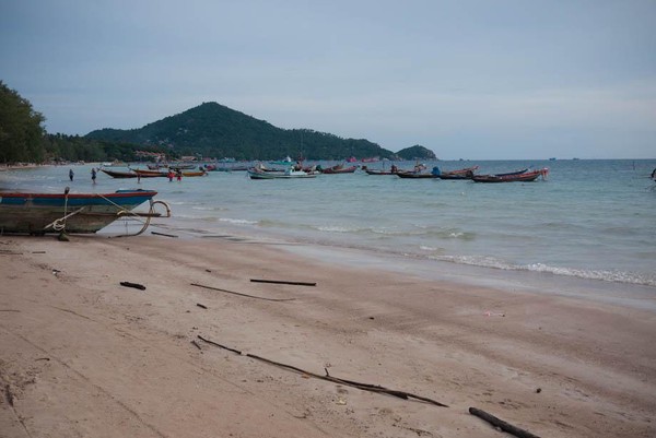 Le trajet entre Koh Samui et Koh Tao dure deux heures, avec un arrêt rapide à Koh Pha-ngan, qui ceci dit nous a semblé déjà un peu plus répondre un peu plus à nos attentes. L’arrivée sur Koh Tao nous confirme l’intérêt d’aller se perdre sur cette petite île. Pour le premier soir, nous restons dans le centre névralgique qui est aussi la plage principale. Il est clair que l’activité touristique est importante, tous les panneaux sont en anglais, les magasins alternent entre laverie, restaurant, agence de voyages et bien sûr club de plongée. Mais on trouve aussi des échoppes de légumes, de poissons, de glaçons ou de matériaux de construction. Cela donne un joyeux mélange et une activité importante. Il est terriblement difficile de rendre cette atmosphère particulière de fin d’après-midi, difficilement saisissable.