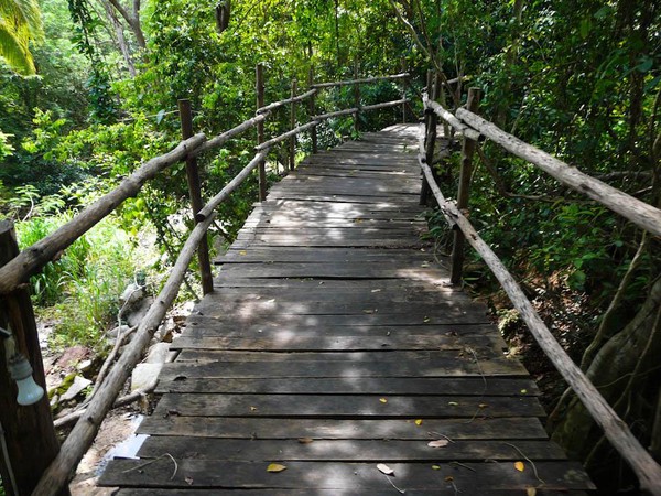 Mais ce n’était pas encore le paradis perdu que nous étions venu chercher. Nous avons donc repris les sac à dos pour nous enfoncer dans l’île vers le versant Est et Tanote Bay. Route difficile que nous ne sommes pas mécontents d’avoir traversé en 4x4, puis passage pittoresque sur un pont de bois pas toujours très stable pour enfin découvrir le spot sur lequel nous allons maintenant passer quelques temps. Eau transparente, touristes clairsemés, bungalow à prix abordables. Ca y’est nous sommes là où nous voulions être.