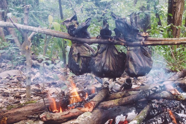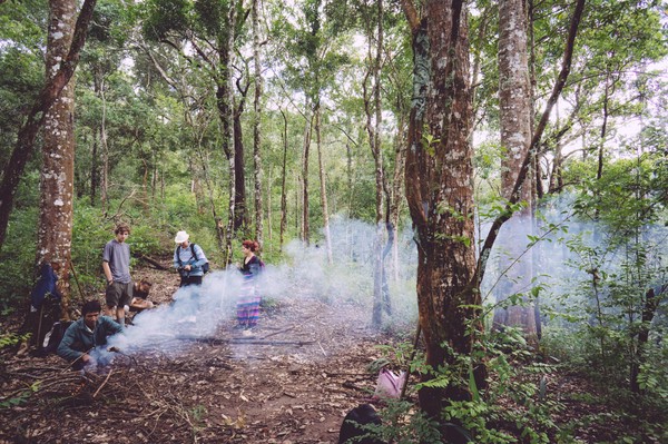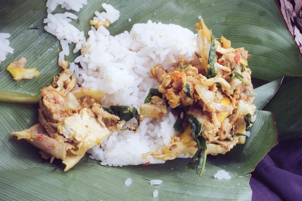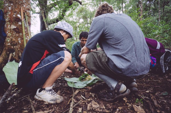 Chiang Mai, la perle du Nord. La différence est saisissante avec Bangkok, le rythme même de la ville est différent, un peu plus lent. Les habitants sont aussi plus détendus, laisse les choses venir (non je n’ai pas voulu dire nonchalants). Après une petite balade en ville nous décidons de retourner voir notre très cher agence proposant des treks à la journée, qui justement en proposait un le lendemain et suite à une forte pression gerbillesque, je l’avoue, nous réservons le trek. Il s’agit toujours de Pooh Eco-trekking, une agence de trek proposant à chacun de ses treks une visite dans une communauté des tribus des montagnes. Ils sont forts bien organisés, très sympathiques et leurs treks permettent toujours de voir une nouvelle facette de la région et de la vie à la frontière birmane. Ce trek a été l’occasion de goûter un repas réalisé à 90% à l’aide d’ingrédient trouvés le matin même dans la forêt par notre guide et ses deux cousins qui nous accompagnaient. Nous avons mangé de la viande (ou tofu pour la végétarienne du groupe) aux petits légumes cuit dans une feuille de bananier au feux de bois. D’aucun ont également gouter l’araignée de bananier grillée également au feu de bois.