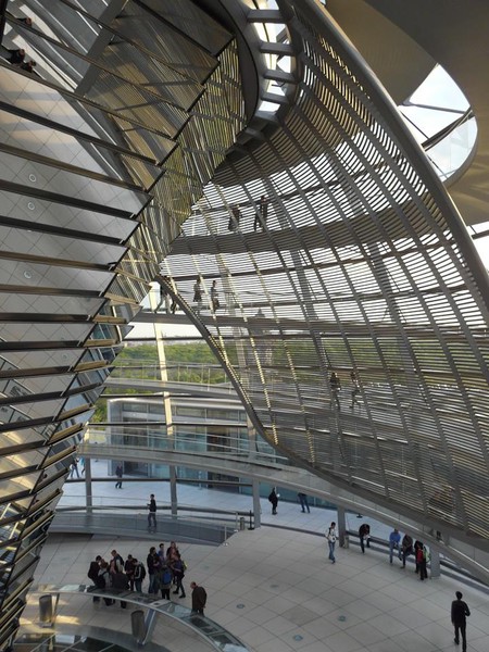 Durant ma première journée berlinoise, j’ai passé plus de temps dans un aéroport qui devait bientôt ouvrir qu’en centre-ville. Comme tout grand chantier … c’est très impressionnant.. Comme tout grand chantier….le projet et donc l’ouverture ont pris beaucoup de retard (pas avant 2013 d’après les dernières informations). C’est donc en chaussures de chantier-gilet jaune - casque de chantier que j’ai erré dans les bâtiments (non je ne mettrai pas d’images sur ce thème). Même dans ces situations, la gerbille se faufile. La deuxième journée j’ai pu avoir l’honneur de visiter le très beau bâtiment du Reichstag, rénové par un petit architecte peu connu appelé Norman Foster (pour ceux qui ont oublié.. en France le carré d’art à Nîmes, le viaduc de Millau, bientôt la tour Hermitage à La Défense…). Je garde un lien fort avec l’architecture et je suis sûre que cela se voit un peu dans les images que je vous ai choisies aujourd’hui.