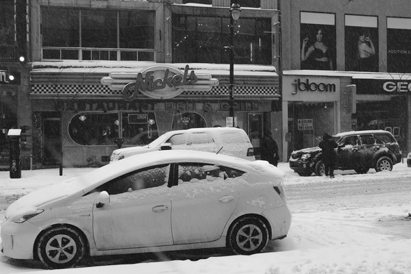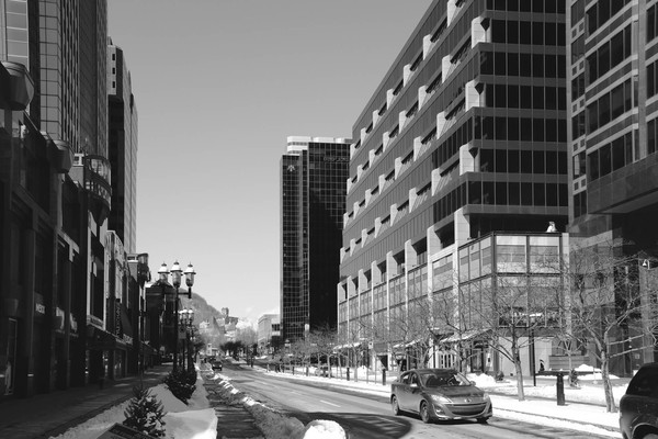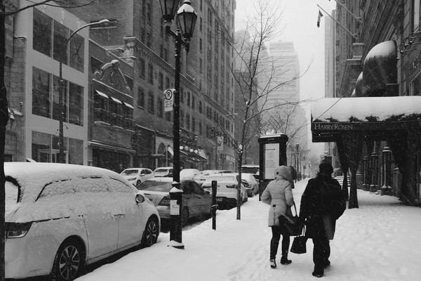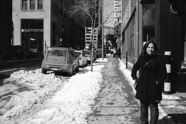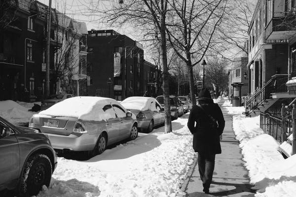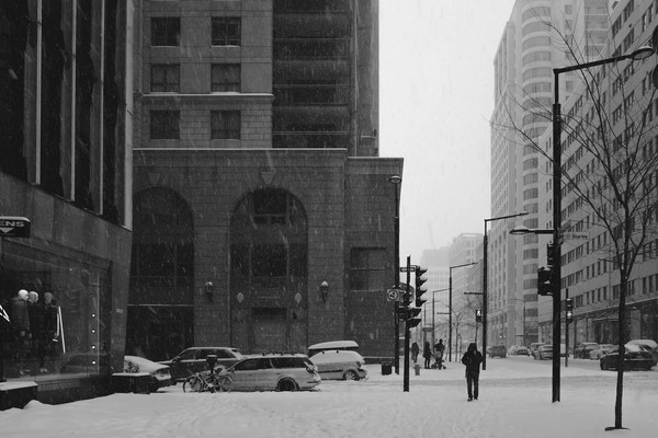 Et puis un jour, comme aujourd’hui où, pour je ne sais quelle raison, des réminiscences surgissent vient soudain l’envie de partager ce travail. Il s’agit ici d’une petite série prise en mars dernier à Montréal. Ciel couvert, il fait -18° (ressenti -28° … brrr!), j’ai envie de tester quelque chose de nouveau : des noirs et blancs profond et massif. Pas d’alternative, je reste skotché à ce réglage directement en JPG sur le x100S. Pas de Raw, pas de traitement en post prod si ce n’est un petit redressement des perspective pour compenser le 23mm du x100s.