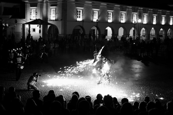 Ce sera au sortir d’un marchand de glace à Tavira que nous tomberons nez à nez avec un dragon et son armée de tambours fumigènes. Le X-T1 se fera une fois encore un allier précieux sur cette place où l’éclairage public fut éteint pour l’occasion.