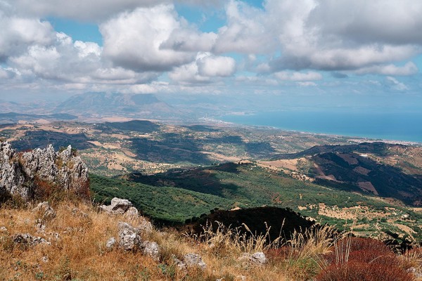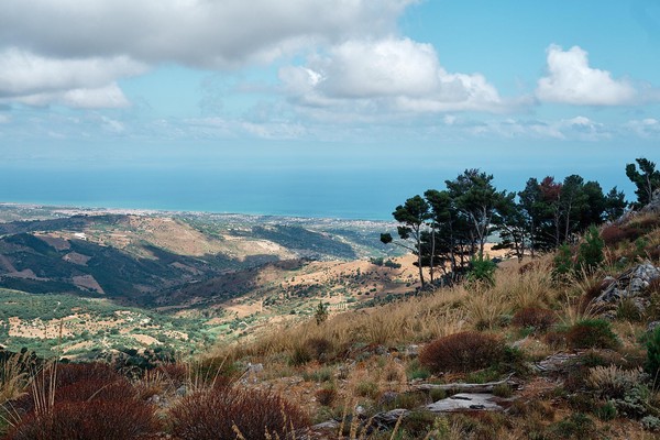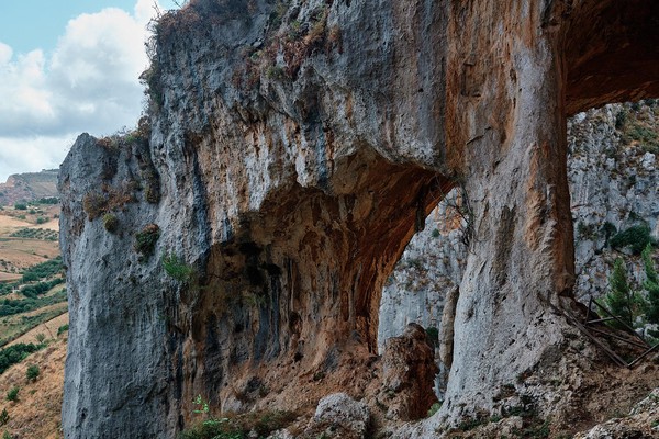 Et nous voila sur ce petit sentier qui sent la noisette, le pin - suivez svp - à suivre Mininou - pas vous, nous rohh - en route pour une ascension à travers la forêt. Premier stop à la dite grotte, celle de Grattara pas celle du gros tas, qu’à un gros trou mais pas de rat à défaut de tas de gros cailloux. Puis 180 pour suivre le sentier jusqu’à la crête où nous attentent tout un tas de wahou, omg, wtfbbq11!, bref de « ah ouais quand même » pour saluer cette vue à flanc de falaise sur l’ensemble de la vallée. Le regard porte si loin que le ciel se confond avec la mer, les criques dessinent un rivage accidenté jusqu’à Palerme pour laisser la place à monts et vaux dans ce paysage grandiose. Ok ça valait le coût de grimper …. Azy sort Instagram là oooh.