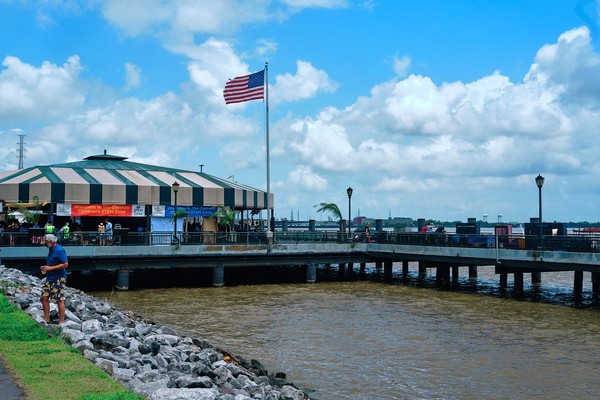 Direction l’Aquarium sur la rive du Mississippi. Premier étage on regrette presque : c’est Disney land au pays des Maya. Tout sonne faux … on avait pas dit que le plastique c’était mauvais pour les tortues ? Deuxième étage, et renversement de situation, un ara bleu fait des pirouettes, y’a de la Poiscaille qu’on a jamais vu, genre un gros poisson qui s’prend pour un aspirateur (paddle fish) tandis que les crocos surveillent leur marécage du coin de l’oeil. On rira (jaune) sur le sponsoring de l’aquarium par quatre compagnies pétrolières en se demandant si la déco avec bout de pipeline est volontairement ironique.