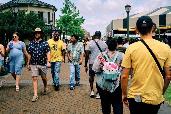 Sortie direction le festival, ses scènes de musique country et ses stands à merguez local. Riz sale (c’est le nom, pas un jugement de valeur), Po boy au bbq porc, Gumbo chelou (là oui c’est un jugement de valeur). Difficile de pas faire dans le gras : on n’a pas encore vu la queue d’un légume depuis qu’on est arrivé. Des zigs et des zags dans les ruelles du Carré, chaque coin de rue abrite ici une scène improvisée de Jazz Manouche, là une liseuse de bonne aventure, non loin d’une échoppe de pierres semi précieuses : ah bah voila, mini nous va faire du shopping… je vous laisse hein … T_T