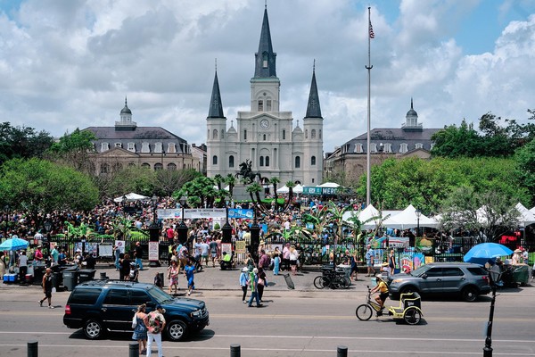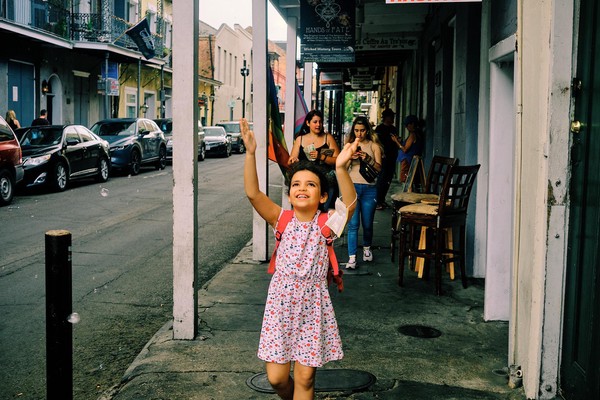 C’est donc avec peu de sommeil (l’ours ronfle toujours et il a maintenant un pote shetland qui joue des claquettes à 5h du mat), mais avec beaucoup de bonne humeur que nous repartons explorer le French Quarter en ce dernier dimanche de festival. La Nouvelle Orléans c’est tout ce qu’on avait aimé à Cuba, sans tout ce qu’on a détesté à Cuba. C’est chaud comme un cuivre bien travaillé, un peu moite pareil d’ailleurs, c’est vivant, c’est bruyant sans être agressif, c’est caché et ouvert, et c’est plein de couleurs. On a le curseur saturation qui explose, c’est vert, c’est jaune, rouge arc en ciel et plein de paillettes.