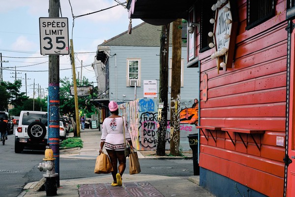 Il est aussi plus facile de circuler (naaaan spa la peine de revenir Captain Ob…) ce qui étend notre périmètre au delà du French Quarter. Ce voyage n’abrite aucune intention d’exhaustivité, on se donne deux / trois lignes et on laisse ensuite faire le hasard. On se retrouve donc à pérégriner dans les quartiers avoisinants où les maisons traditionnelles se sont lancées dans un concours de peintures glamours et de blagues moisies : traversées de sirènes, garde de chats endormis, Bernie emmitouflé et autres chiens lunatiques décorent les façades autant que les fresques murales. C’est comme si Dali avait rencontré Sim autour d’un Irish Coffee dans la moiteur du Bayou.
