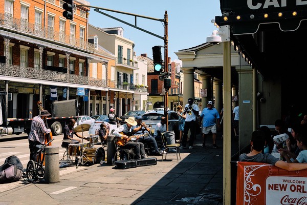 Ouais, bon fallait bien le préciser tellement notre virée d’aujourd’hui contraste avec la Nouvelle Orléans du weekend. Les rues sont désertées, laissant place à la valse des manutentionnaires qui démontent telles des fourmis aux gros bras très bien rodés les scènes et autres stands abandonnés des festivaliers. On croise encore de ci de là des musiciens qui réintègrent leurs pénates, bout de trottoirs et cafés, sans que la ville ne porte de stigmates des festivités. La mécanique est bien huilée.