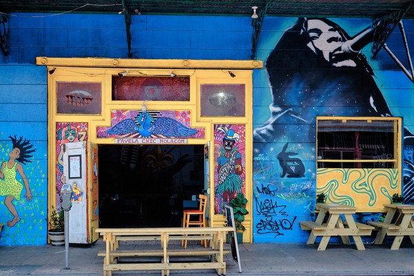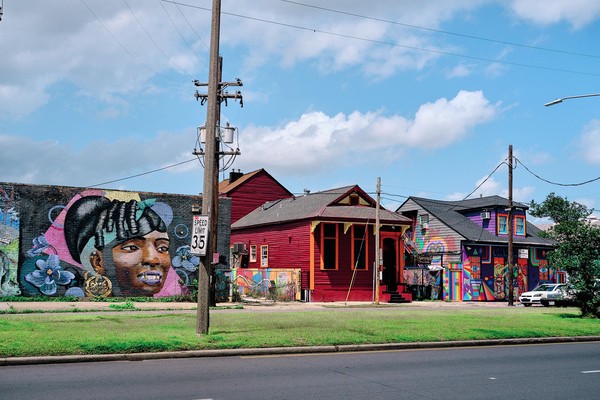 Il est aussi plus facile de circuler (naaaan spa la peine de revenir Captain Ob…) ce qui étend notre périmètre au delà du French Quarter. Ce voyage n’abrite aucune intention d’exhaustivité, on se donne deux / trois lignes et on laisse ensuite faire le hasard. On se retrouve donc à pérégriner dans les quartiers avoisinants où les maisons traditionnelles se sont lancées dans un concours de peintures glamours et de blagues moisies : traversées de sirènes, garde de chats endormis, Bernie emmitouflé et autres chiens lunatiques décorent les façades autant que les fresques murales. C’est comme si Dali avait rencontré Sim autour d’un Irish Coffee dans la moiteur du Bayou.