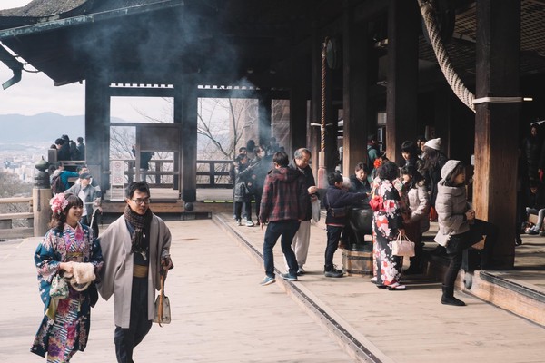 Première journée de réelle escapade au Japon en mode découverte à trois… et Kyoto s’y prête très bien. Objectif de la journée : rendre visite à un maximum de temples bouddhistes au milieu d’un maximum de touristes japonais en kimonos.