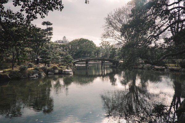 Après ce bain de foule - et un arrêt bénéfique dans un café tout tranquille - nous avons délaissé les temples pour rechercher une activité qui permettrait à notre fille de se dégourdir un peu les pattes. Nos pérégrinations nous ont permis de découvrir un magnifique jardin pour enfin goûter à la zenitude typiquement japonaise … et non, nous n’avons pas été dans un « jardin sec »… vous avez déjà essayé d’empêcher une petite fille de 15 mois de jouer avec des cailloux ??