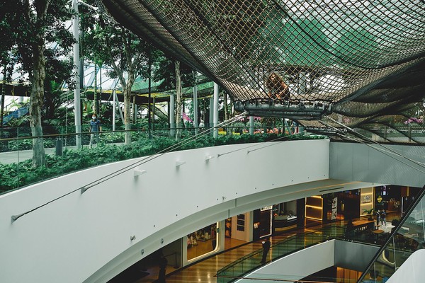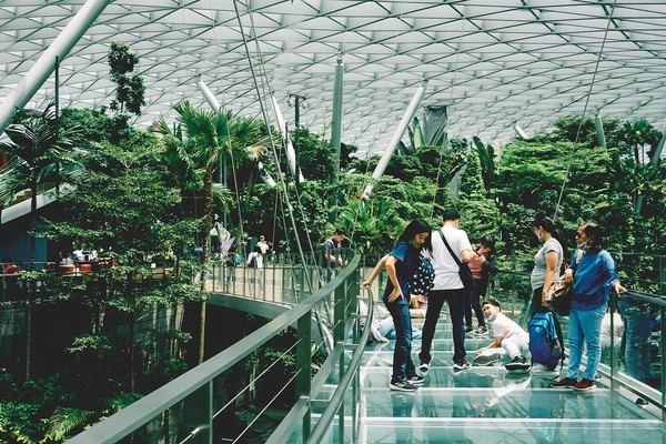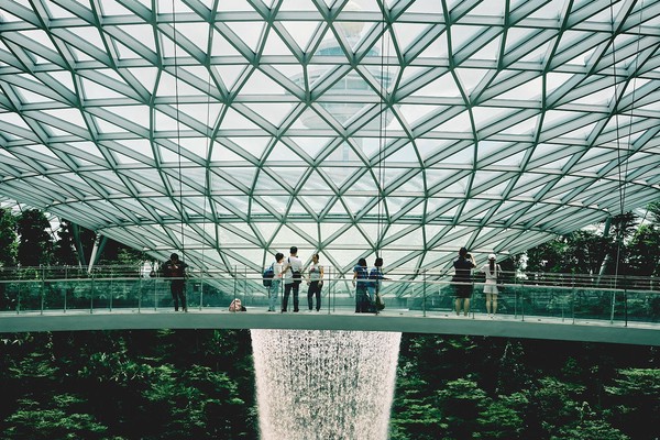 Fin de suspens, c’est au moment où l’on s’apprêtait à pratiquer notre Kiwi pour appeler l’office d’immigration néo-zélandais - en mode lémurien azimuté le kiwi après avoir passé la nuit à rafraichir l’application d’émission - qu’on a enfin reçu le précieux feu vert. Bonjour le roller-coaster émotionnel. En parlant de ça, il est temps de pack et de partir vers l’aéroport où nous attendent 5/6h de glande avant l’embarquement. Vérification de la fièvre, check in et direction le Jewel qu’on avait vu que très rapidement à son ouverture lors de notre dernier passage à Singapour. Le Jewel c’est cette nouvelle extension de l’aéroport, où une cascade géante se précipite dans un vortex, entourée d’une véritable forêt tropicale en étages, elle même cernée de boutiques de luxe.