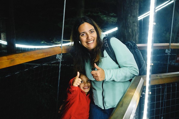 Au retour à Rotorua et comme on en voulait encore, on est ressortis après diner pour faire une activité que seul un kiwi pouvait inventer : se balader à 20m du sol dans une forêt en pleine nuit. Et comme cela n’était pas assez, une nouvelle section à 30m venait d’ouvrir. Nous avons donc braver notre fatigue pour passer de passerelles en passerelles pour ce circuit de 800m très bien mis en valeur par des éclairages très subtils et des lanternes incroyables. Là on fait les fiers, mais clairement ce n’est pas naturel ou évident de se retrouver dans cette situation et encore une fois Mininou, malgré sa fatigue a réussi à profiter du moment (et à ne pas déraper sur une des passerelles en bois).