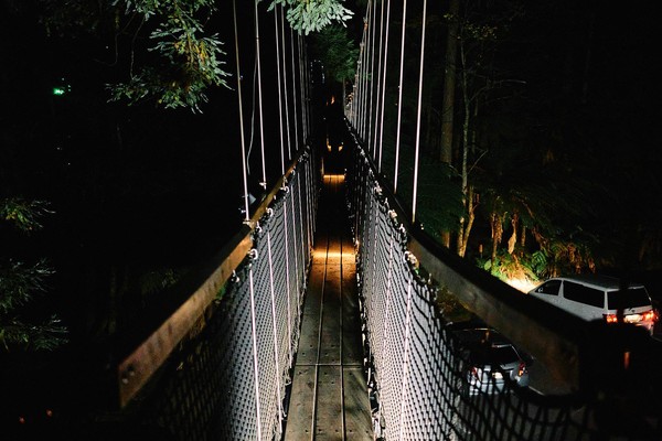 Au retour à Rotorua et comme on en voulait encore, on est ressortis après diner pour faire une activité que seul un kiwi pouvait inventer : se balader à 20m du sol dans une forêt en pleine nuit. Et comme cela n’était pas assez, une nouvelle section à 30m venait d’ouvrir. Nous avons donc braver notre fatigue pour passer de passerelles en passerelles pour ce circuit de 800m très bien mis en valeur par des éclairages très subtils et des lanternes incroyables. Là on fait les fiers, mais clairement ce n’est pas naturel ou évident de se retrouver dans cette situation et encore une fois Mininou, malgré sa fatigue a réussi à profiter du moment (et à ne pas déraper sur une des passerelles en bois).