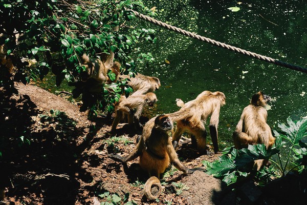 Initialement pas franchement d’humeur à me lancer dans la photo animalière, je me suis pourtant laissé prendre au jeu. Jusqu’à la rencontre avec les singes-araignées … non que ce soient des singes à huit pattes sorti d’un film de série Z mais plutôt que lors d’un geste malheureux pour permettre à mininou de les voir, l’appareil de photo de la petite à décider de nous rejouer un remix de gorille dans brume version plouf dans la rivière. Les émotions sont alors sur un ring, la Colère (contre moi même) se fait la part belle et taille Frustration et Culpabilité comme du bois vert. Fin de visite en mode scrogneugneu … rien de grave, mais ca saoule.