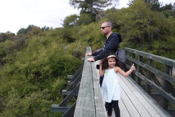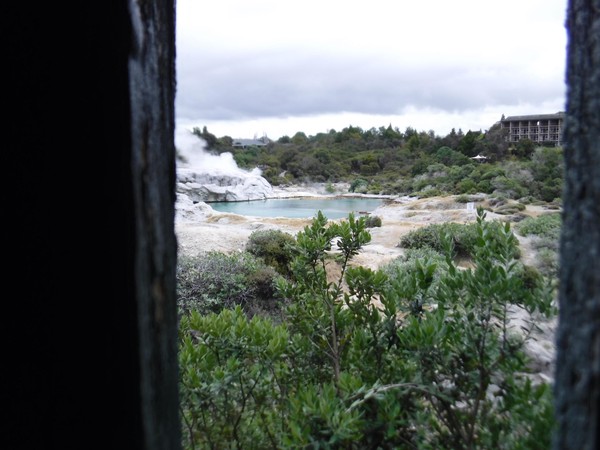 Les lacs dans le village Maori étaient un petit peu de couleur et celui que j’ai vu aujourd’hui était rose et vert, et le reste était bleu. En dessous des lacs il y avait de la lave et ça faisait que l’eau était très très chaude, et surtout ça faisait de la fumée.