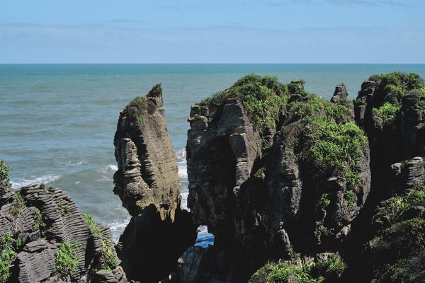 Aujourd’hui, jour 7, et nous remontons vers le Nord (oui je sais cela peut sembler contre-intuitif) pour 40 km de manière à aller voir un des sites de la côte Ouest et de rajouter une petit balade en plus. Au milieu du chemin, nous nous arrêtons déjà pour contempler la beauté de la côte. La mer est puissante, le rivage superbe et les points de vue LOOOOOKOUT à nous couper le souffle. Nous connaissions la NZ pour les montagnes, les volcans, les lacs et les fjords. Nous nous fracturons plusieurs fois la rétine en 40 km.