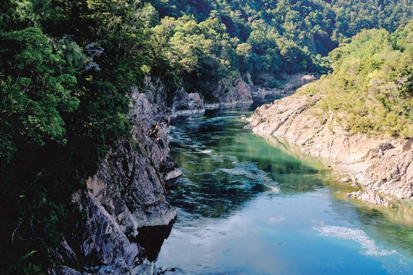 Pour nous permettre de conserver toutes nos capacités intellectuelles après une telle contemplation végétale, nous nous arrêtons pour passer sur le plus long pont suspendu de NZ, 110 mètres de long au dessus de 19m de vide. Tout se passait très bien avant qu’un groupe décide de ne pas attendre la fin de notre traversée et ainsi de passer dans l’autre sens en même temps que nous. Et là ce n’est pas la longueur du pont le problème… mais bien la largeur de celui-ci. Je n’ai jamais cotoyé d’aussi proche des étrangers avec le choix cornélien de, soit se croiser dos à dos et de regarder dans le vide, soit les croiser de face et se retrouver beaucoup trop proches d’inconnus. Heureusement après ce moment pas forcément agréable, une petite balade le long de la rivière avec thème minier nous a permis de récupérer, avant un retour direct en tyrolienne. Bah oui, nous on avait bien compris que le pont c’était mieux à sens unique.