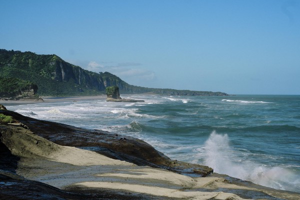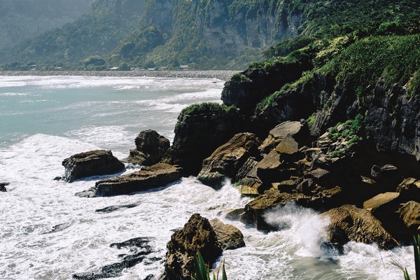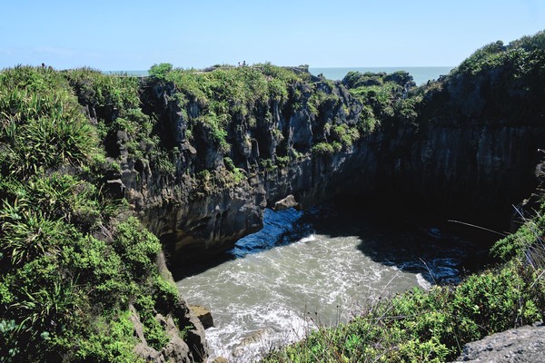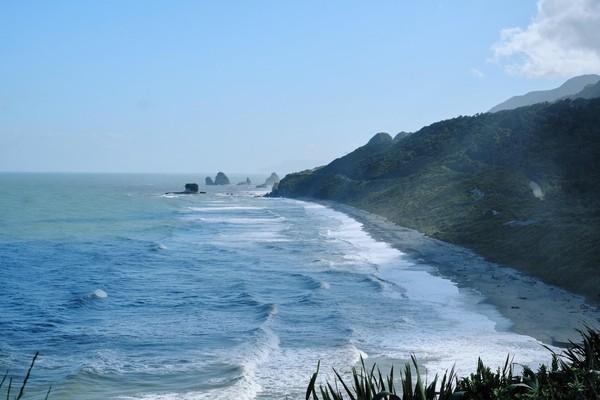 Aujourd’hui, jour 7, et nous remontons vers le Nord (oui je sais cela peut sembler contre-intuitif) pour 40 km de manière à aller voir un des sites de la côte Ouest et de rajouter une petit balade en plus. Au milieu du chemin, nous nous arrêtons déjà pour contempler la beauté de la côte. La mer est puissante, le rivage superbe et les points de vue LOOOOOKOUT à nous couper le souffle. Nous connaissions la NZ pour les montagnes, les volcans, les lacs et les fjords. Nous nous fracturons plusieurs fois la rétine en 40 km.