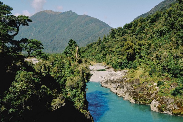 C’est dans cet esprit, qu’on suivra de nouveau la Gerbille organisatrice ; la fameuse, celle qu’à la bougeotte et qu’il faut bien l’avouer, nous a fait des plans au poil de … au milimètre, si bien que les guides touristiques reprennent exactement son tracé. Direction les gorges de Hokitika : un site un peu trop touristique (on le savait) mais qui valait tout de même le coup de voir ses eaux turquoises du haut d’un point suspendu de 90m. On enchaînera ensuite avec le lac Kaniere qui rassemble ni plus ni moins que tous les attributs de la Nouvelle Zélande : eau transparente, montagnes boisées en périphérie, glaciers en fond. Les rares nuages se reflètent dans l’eau crystalline et ce ne sont pas les quatres canards et le cormorant noir en bord du lac qui viendront troubler cette vision idyllique.