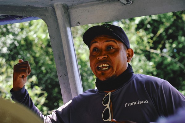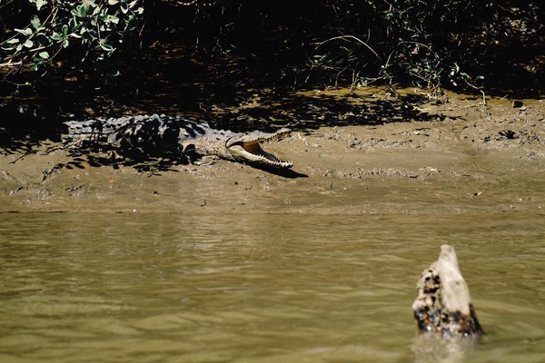Descente sur la rivière Tempisce à la recherche des capucins, des hérons bleus et des maitres des lieux : les crocodiles que dès fois tu te demandes si c’était pas mieux de les voir à la télé ou en sac à main. C’est ce que c’est vivace un crocodile - geste avec les mains de zim zam zouk.