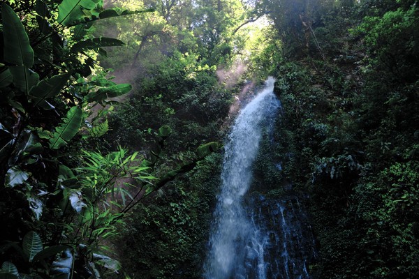 Et grand bien nous y fait parce que la journée s’annonce un peu plus sportive aujourd’hui. Il y a beaucoup de réserves au Costa Rica et beaucoup d’activités à touristes. Pas toujours facile de faire le tri, mais sur ce coup, la Gerbille ne s’est pas plantée dans la sélection. Direction donc vers une initiative locale pour une randonnée sans personne au milieu de la jungle. Dans la famille Forest, je passe Gump et après Cloud et Rain je pioche Tropical et laisse Withacker scier Gerrera. Et là c’est la claque, taille nouvelle Zélande, 46 fillette. Paysages de fous furieux dans une végétation luxuriante à faire houbir un Marsupilami, cascades qu’on dirait Iguazú en petit et ponts de singes à faire pâlir un vertigineux. Un petit trek comme c’est marqué sur la carte postale. Et histoire de le finir en apothéose, on se fait le dénivelé inverse à cheval : Mininou en tête, seule chevauchant Mescal (ça ne s’invente pas) on retourne au son des sabots vers le centre qui nous régalera en plus d’un bon repas. Hormis la gerbille qui se déguise en lapin myxomatosé ; c’est juste parfait.