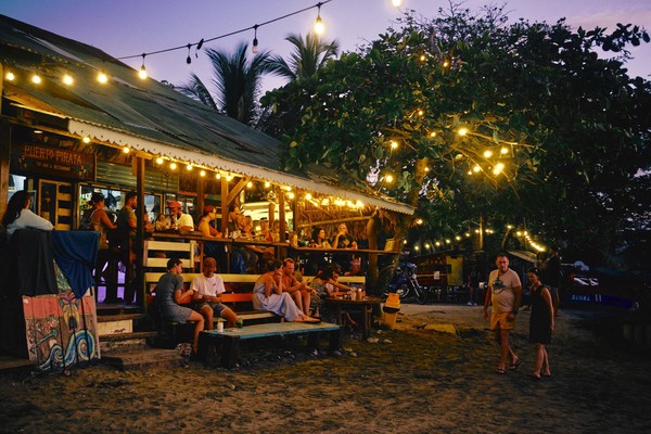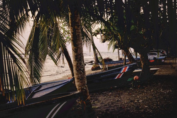Cahuita et Puerto Viejo c’était le coin chichon et ganja avant que les bobos ne décident qu’ils aiment aussi la mer, même si le sable ça colle et l’eau c’est salé en plus de mouiller. Tout ça se télescope et donne un joyeux bordel de station balnéaire où le touriste de la Sarthe percute le Costa Jamaïcain. La paillotte de bric et de broc y côtoie le shop trendy digne de Paris XI, tandis que les amoureux de la terre se disputent le bout de terrain avec le sport bar à coup de mojito vegan sans gluten vs Cerveza Imperial. Sur le front de mer les touristes cramés façon thermidor UV 12 côtoient les familles Costa Ricaines qui se déploient en tribus sur la plage à coup de Parilla et grosses stéréos sous leur pergola de voyage. Le coucher de soleil sur la mer agitée met tout le monde d’accord et malgré l’ambiance fourmilière sous Téquila, l’absence de sens prend une direction, celle du soleil couchant.