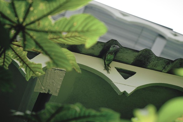 Bref… avance rapide sur le lundi. Nous avions prévu une balade, mais là encore pour des raisons indépendantes de notre volonté (des petites choses à faire pour le boulot de Montréal et de Paris) et un reste de la flemmingite aigüe du matin, nous n’avons pas réussi à bouger avant midi dans une atmosphère moite et un ciel gris pour ramper vers la mer. Et bim, PANDANSL’ŒIL (dédicace à Franquin), les plages superbes de cartes postales: le soleil, la mer, la plage, les zoulis palmiers, les petits crabounets tout mignons sur les petits rochers et pour Mininou même la balançoire avec vue sur mer. Côté terre, on s’extasiera aussi sur un groupe de lézards. Oui je sais Mininou, ce n’était pas des lézards mais des petits Iguanes.