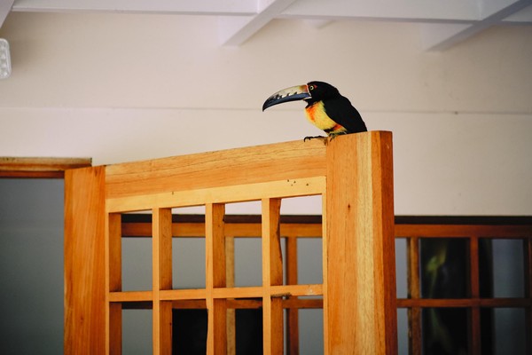 - Ok et c’est quoi que tu as préféré ? En voilà une question intéressante, comme toute la famille j’ai bien aimé les paresseux, car on n’en a pas vu depuis notre arrivée, mais mon coup de cœur reste un mini-toucan facétieux, réintroduit dans la nature, mais qui revient régulièrement voir ce qu’il passe avec sa bande de pote.
