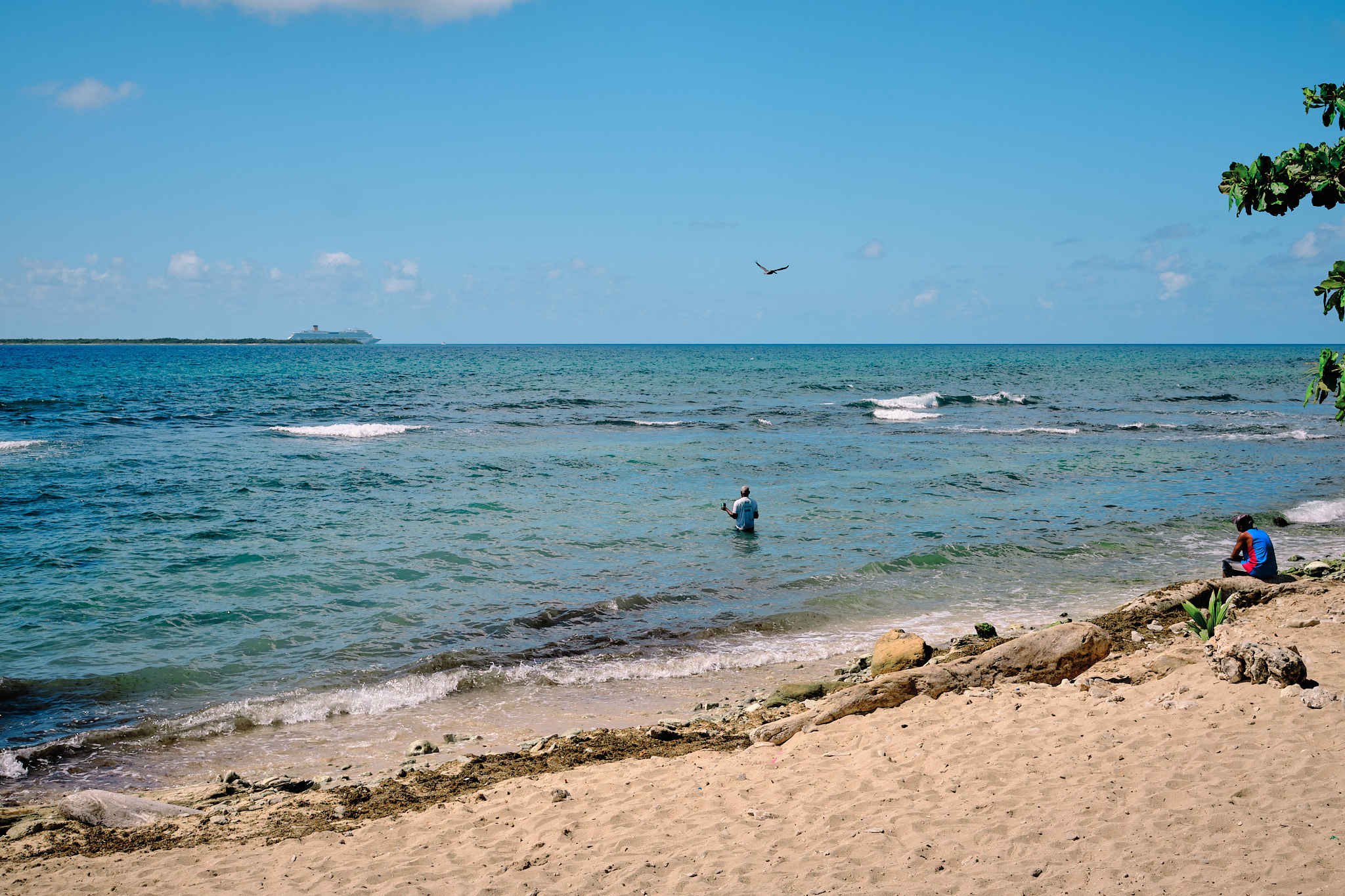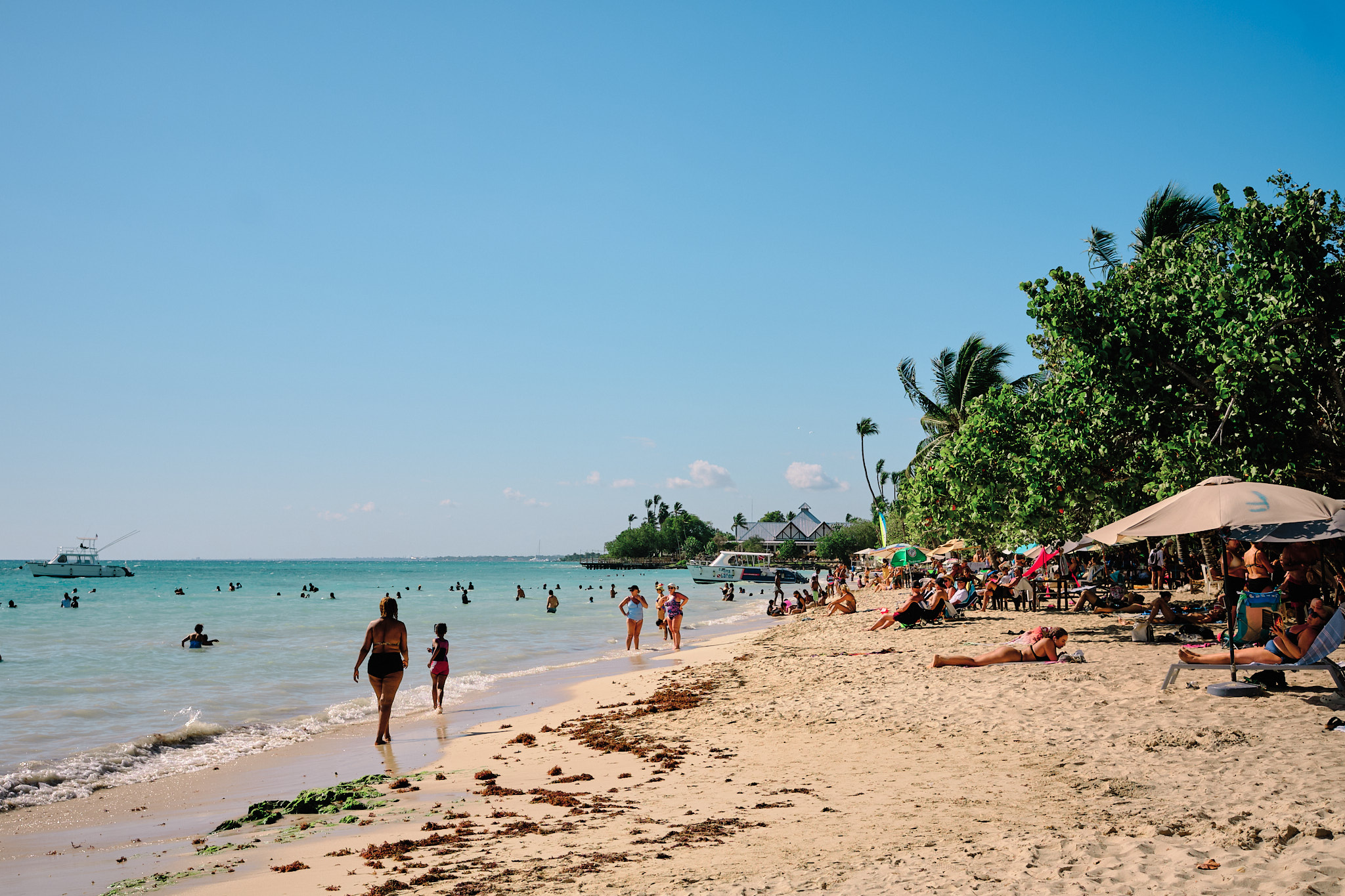 Cette petite Oasis nous a d’ailleurs fait prendre de meilleure décisions : direction Bayahibé, à 30mn de La Romana … et là on se retrouve dans les petites villes cotiêres qu’on aime bien. On y trouve un glacier, une plage qui ressemble à une plage .. même si à cette heure elle est bondée de la sortie d’école. Ca à l’air de s’améliorer…