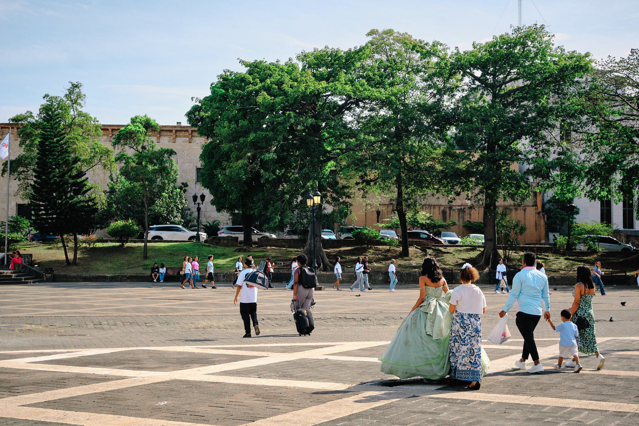 Et zou, façon nos bons vieux voyages en Asie, on booke du jour au lendemain un hotel et même si la journée est prévue d’être longue, ce serait dommage de ne pas profiter une dernière fois de la piscine géante, déserte, de notre hôtel salvateur. La vie est dure pour la gerbille et Mininou, le lézard évitant l’eau. Tel Gizmo, il ne faut pas trop le mouiller. Mais cela était sans compter à notre épreuve de taille : survivre au trajet de 1h40 entre La Romana et Santo Domingo. Et là permettez moi de passer quelques lignes supplémentaires sur la façon très particulière de conduire en République Dominicaine. J’ai conduit dans beaucoup d’écosystèmes différents mais je dois avouer celui ci est particulier. Le bon côté est que je ne m’ennuie jamais, pas une minute au volant. Pour le reste… tout ce qui peut être sur la route EST sur la route, comme au Maroc… avec un code de la route qui tient plus de la bonne pratique, que de la réglementation comme dans certaines agglomérations argentines…. avec une concentration de deux roues, dignes des capitales asiatiques. Franchement, j’ai régulièrement cherché les tuks tuks et les ânes mais même sans cela c’est assez incroyable. Sur la voie rapide, la conduite se fait à “qui à la plus grosse… voiture” ou encore à “qui doublera de manière la plus artistique possible” (🦎 On devrait leur mettre une note artistique, comme au patinage). Finalement après 1h30, arriver dans un embouteillage derrière un camion de gestion des espaces versts en plein milieu d’un quartier historique était finalement assez reposant. Moins de place, moins de vitesse, moins de véhicule, moins de problèmes graves.